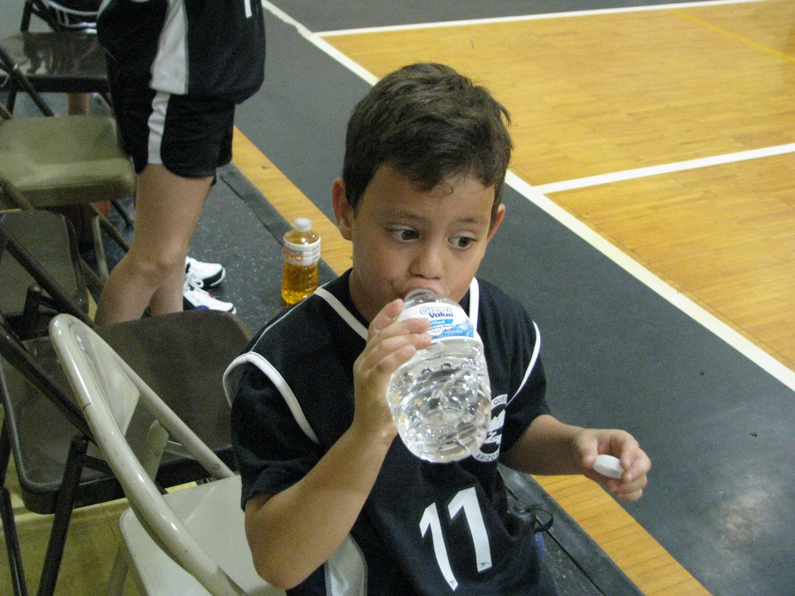 After the game they found this tether ball off to the side of the gym. They never slow down, except maybe when they are asleep. Ha!